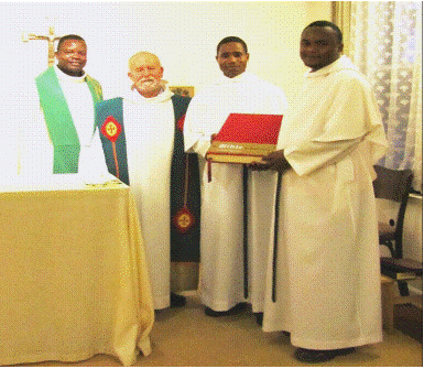C’est donc en vue de marquer un pas de plus dans leur ‘marche vers l’autel’ que les frères Joseph Munduvuyira et Gaston Ndaleghana ont été institués lecteurs. La cérémonie de l’institution a eu lieu le lundi 5 octobre dernier, au cours d’une Eucharistie communautaire célébrée par le P. Marcel Poirier, délégué du provincial d’Amérique du Nord, dans la chapelle de la communauté assomptionniste D’Alzon.