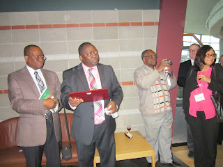 A l’occasion, le président de la communauté congolaise de Québec, monsieur Philippe Kambale Katahwa lui a remis une plaque de valeur assortie d’un message de félicitation. Après quelques prises de photos avec le professeur Valentin-Yves Mudimbe, les convives se sont livrés à des véritables moments d'échanges qui se sont poursuivis jusque tard dans la soirée.