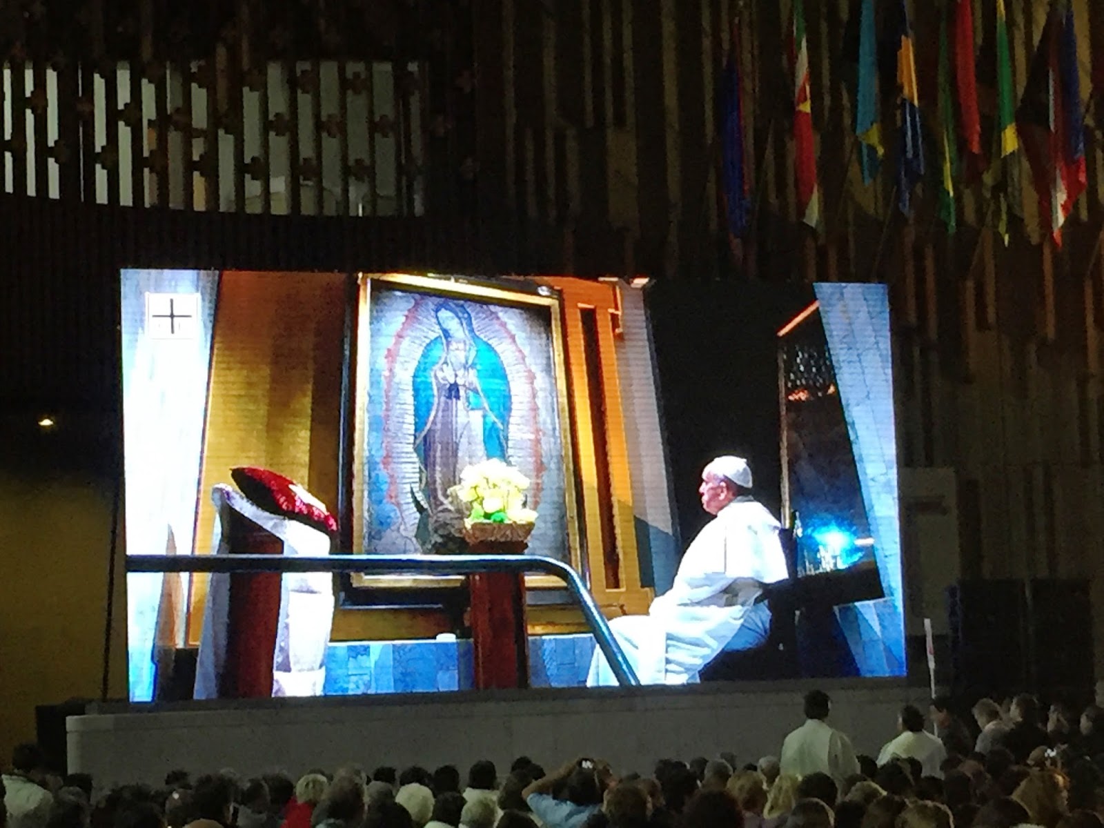 prière du pape devant l’Icône de celle que les Mexicains aiment appeler la « Lupita ».